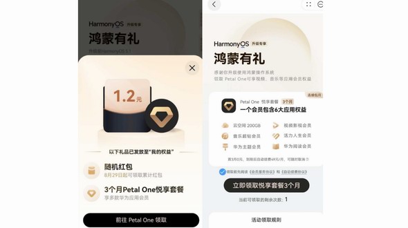 趕緊看看你家的舊華為手機(jī)能不能升級(jí)到HarmonyOS 5.1吧!升級(jí)后,桌面右滑進(jìn)入負(fù)一屏的“鴻蒙有禮”簽到試試手氣!也許下一個(gè)抽中Petal One悅享套餐...