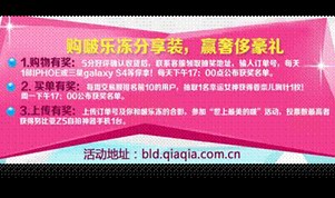 “啵樂(lè)凍”抽獎(jiǎng)活動(dòng)火熱進(jìn)行中: 洽洽“啵樂(lè)凍”新品上市已有一段時(shí)間,至今產(chǎn)品很受廣大買(mǎi)家們的青睞,銷(xiāo)量火爆,好評(píng)多多?!班?lè)凍”抽獎(jiǎng)活動(dòng),三重大獎(jiǎng)重磅來(lái)襲,奢侈...