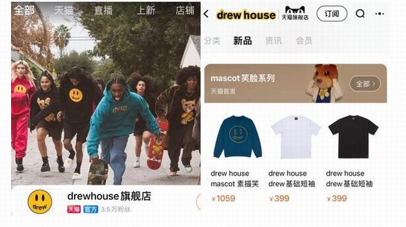 今年3月,賈斯汀·比伯(Justin Bieber)創(chuàng)辦的潮牌drew house獨家在天貓開官方旗艦店。drew house于2018年在美國加州成立,品牌風...