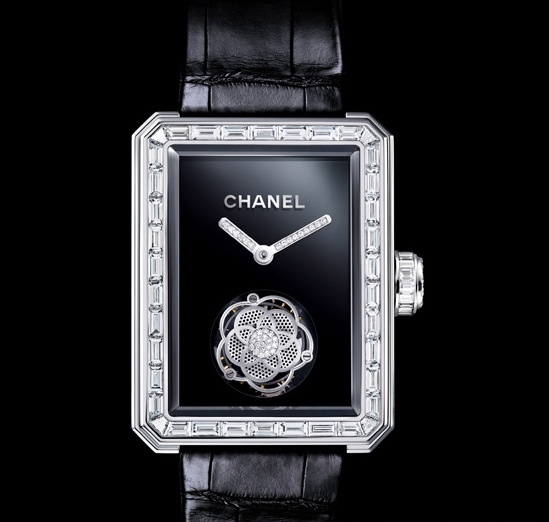 這枚卓越非凡的陀飛輪是香奈兒與瑞士愛(ài)彼表 Audemars Piguet 高級(jí)研發(fā)部門(mén) Renaud-Papi(APRP SA)的設(shè)計(jì)師、工程師和制表大師緊密合作的成果,也是兩家公司共同研發(fā)的首枚浮動(dòng)式陀飛輪。這一款浮動(dòng)式陀飛輪被雕琢成香奈兒女士最鐘愛(ài)的山茶花圖案,在 Première 腕表的中心悄然無(wú)聲地轉(zhuǎn)動(dòng),低調(diào)到近乎神秘。熠熠生輝的花瓣與密鑲鉆石的花蕊交相輝映,襯托出山茶花的嬌美精致。表殼、表圈和表冠均鑲滿(mǎn)長(zhǎng)階梯形切割鉆石、圓鉆或珍貴寶石。