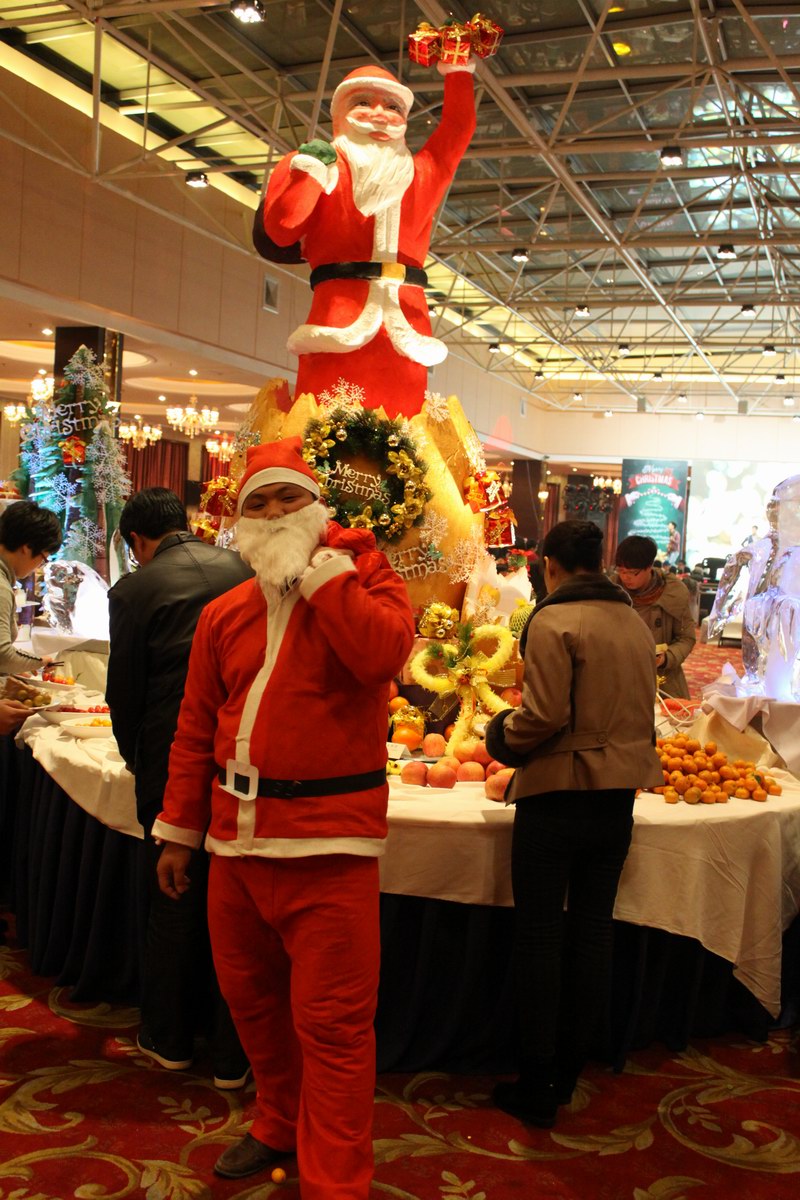 浦江國際開元大酒店宴會(huì)廳布置充滿著濃郁的節(jié)日氣氛,圣誕老人以及盛載著關(guān)愛的慈善圣誕樹擺放在進(jìn)門口,賓客置身其中猶如進(jìn)入完美的童話世界,在歡快祥和的圣誕舞曲聲中揭開“平安夜慈善音樂晚餐”活動(dòng)的帷幕。在就餐區(qū)域內(nèi)“圣誕老人”背著滿袋子的禮物派發(fā)給賓客們;燈飾、花飾營造出濃濃節(jié)日氛圍,吸引了來來往往的賓客們紛紛合影留念。