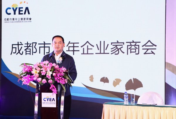 圖:成都市青年企業(yè)家商會(huì)會(huì)長(zhǎng)劉長(zhǎng)明在會(huì)上發(fā)表講話(huà)