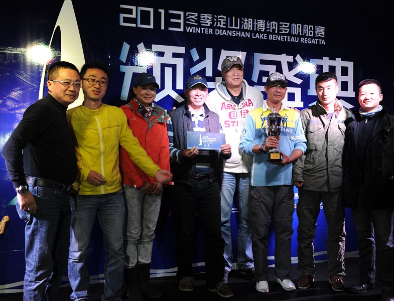 上海美帆游艇俱樂部的董事長時立憲先生為博納多 First20組冠軍老水手隊(duì)頒獎
