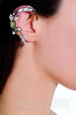 都說耳朵是女人的性感地帶之一,如今掛在耳朵上的裝飾才是最時髦的。這一季耳掛(Ear Cuff)也被稱為全耳式耳環(huán)。這種裝飾性極強(qiáng)的耳掛式飾品大體上圍繞整個耳廓的外延,或是以“書簽”的方式夾戴在整個耳垂部位,甚至還有以耳釘和耳掛組合套裝來佩戴的方式。