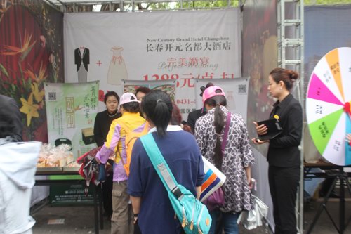 是日,清爽的早晨伴著綿綿的細雨,讓人們的心情也變的愉悅起來,在人頭攢動的展會上,當游客們走過長春開元名都大酒店展位的時候都會紛紛駐足。首先映入大家視線的是琳瑯滿目散發(fā)著陣陣余香的自制西點面包,不禁讓游客們食指大動。而酒店派出的5名銷售人員則會為游人做最生動最全面的介紹。此外,“1388特價婚宴”、“平價菜”、“開元國風粽子”等一系列活動宣傳海報更是讓游客一目了然。對此,一些比較熱情的游人指出:“這次大集參加的酒店這么多,但是一路走下來,還是長春開元名都最專業(yè)。”