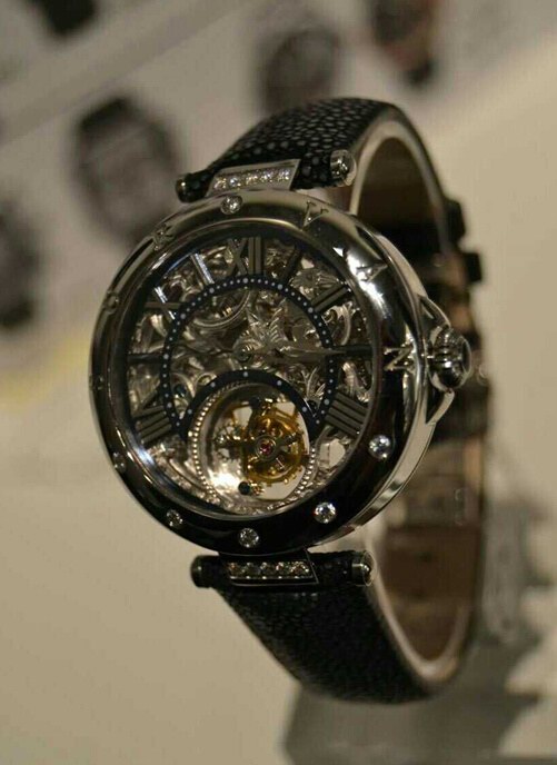 不同于Time100的快時尚定位,SURVAN為輕奢侈品牌,在瑞士誕生,專注于機械手表,鑲嵌施華洛世奇水晶。中文名奢范即為瑞士奢華、機械風范之意。這次發(fā)布的SURVAN品牌共有48款,男女款式各占一半,每款均有2色以上選擇,全部為自動上鏈機械手表,設計均有專利。最高端為陀飛輪機芯,獨有的羅馬字鏤空雕花面原創(chuàng)設計,將陀飛輪華爾茲般的旋轉完美呈現(xiàn)在你的眼前,藍寶石鏡防炫光的效果如空氣般通透,觸摸如美玉般冰清。女款更用天然魔鬼魚皮表帶,奢華而低調(diào)。SURVAN陀飛輪市場售價為7800瑞士法郎。