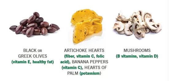 芹菜、黃瓜、紫甘藍、扁豆、西蘭花、豆芽、葵花籽、杏仁、毛豆