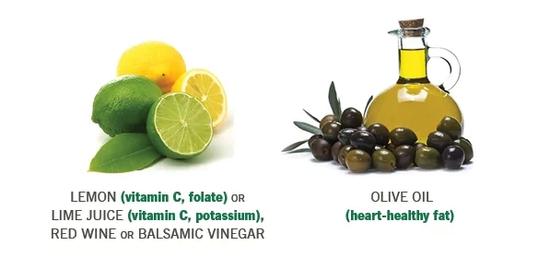 很多沙拉醬中脂肪和鹽的含量,都高得令人發(fā)指。一定要盡量選擇健康的醬汁,比如橄欖油檸檬汁等。