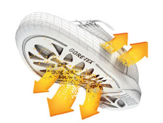 回應(yīng)消費(fèi)者的心聲,搭載最新GORE-TEX? SURROUND?360°防水透氣科技的春夏應(yīng)季鞋品,能使腳部的濕氣和熱量不僅通過(guò)鞋面向上排出,還可以通過(guò)創(chuàng)新性的“腳底透氣系統(tǒng)”將熱氣從鞋底的側(cè)面開(kāi)窗或鞋底向下排出,確保全方位透氣。出色的防水性能則是基于鞋履內(nèi)里所采用的GORE-TEX?薄膜,每平方厘米上有超過(guò)14億的微孔,比水珠小2萬(wàn)倍比水分子大700倍,能夠完全防止外部液態(tài)水的進(jìn)入,又能使汗汽從內(nèi)部順利排出,在鞋內(nèi)建立全天候溫度微循環(huán)調(diào)節(jié)系統(tǒng),使得雙足在任何氣候條件下,都能保持終日干爽舒適,遠(yuǎn)離潮濕和悶熱的困擾。同時(shí),其內(nèi)置的一層牢固性極強(qiáng)的特殊織物,能夠保護(hù)內(nèi)里免受磨損。
