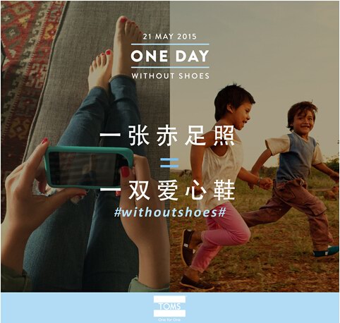 在線上,新浪微博、微信、蘑菇街、阿里巴巴范兒將成為此次活動的聯(lián)合陣地。消費者可以通過在新浪微博上發(fā)布自己的赤足照片@自己的一位好友,同時標注話題#withoutshoes# ,TOMS就將捐贈一雙鞋給有需要的孩子。與此同時,消費者也可以進入微信活動頁@TOMSChina,填寫個人信息并發(fā)布自己的赤足照片,TOMS同樣將捐贈一雙鞋。也就是說,這個五月,無論你是購買了TOMS的鞋子,還是僅僅拍攝了一張赤足的照片并分享出來,在中國乃至世界的某一個角落,就會有一個孩子得到他渴望已久的鞋子。讓我們將雙足暫時離開柔軟舒適的鞋子,體會一次僅僅依靠赤足站在粗砥大地上的感受。即使只有幾分鐘,你也會對那些從小就沒有鞋子穿的孩童的生命軌跡更多一些體認和憫然。TOMS這一行動,旨在讓普通公眾用最簡單最直接最實際的方式,和TOMS一起,為孩子們贏得一雙鞋。