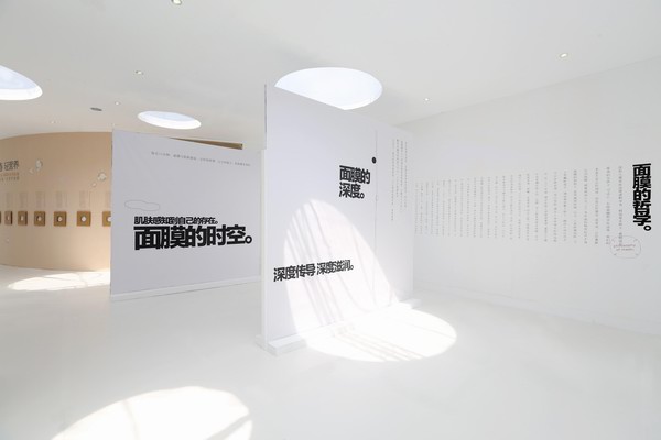 步入展館,我們最先看到的是面膜哲學(xué)區(qū)。悅動的水波和詩意的文字,映出面膜獨有的時空。面膜深得東方養(yǎng)護文化的精髓,有了面膜,肌膚就有了獨立的時空,可以把所需的養(yǎng)分,慢慢的,慢慢的,慢慢的,吸收進去。面膜的本質(zhì)意義,就在于時間之于護膚的意義:這就是美即相信的面膜哲學(xué)。