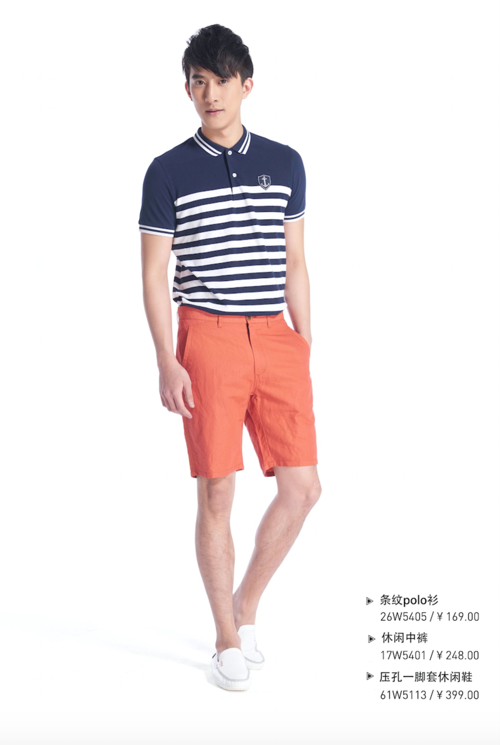 運(yùn)用撞色條紋Polo翻領(lǐng)設(shè)計(jì),搭配附著在人體表面的簡(jiǎn)單排列條紋弧線上,用永恒的平行法則,成就了時(shí)代最經(jīng)典的時(shí)尚。