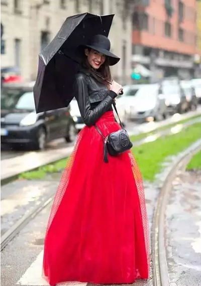 雖然穿一身黑在雨天里看著很酷,有種杜琪峰黑幫片上身的直視感,但你真的不是一名女公關(guān)。有一點(diǎn)的亮色才是一天心情的保證。