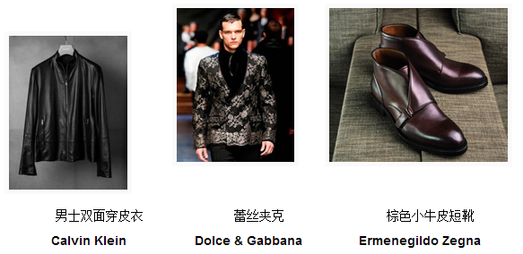 秋冬季節(jié),挑選一款具有造型感的男士外套也不失為一個好選擇。Calvin Klein秋冬系列皮衣別具一格地擁有正反面兩種穿法, 能夠讓你用一件衣服呈現(xiàn)兩種不同的時尚風(fēng)格。Dolce & Gabbana的蕾絲夾克則充滿了設(shè)計感,黑色的外套搭配繁復(fù)的蕾絲,精致而時尚。皮鞋作為型男不容忽視的搭配細節(jié),既能體現(xiàn)男性氣質(zhì)又不失時尚。Ermenegildo Zegna的棕色小牛皮短靴以優(yōu)質(zhì)皮革搭配其獨特設(shè)計,既舒適又有型。