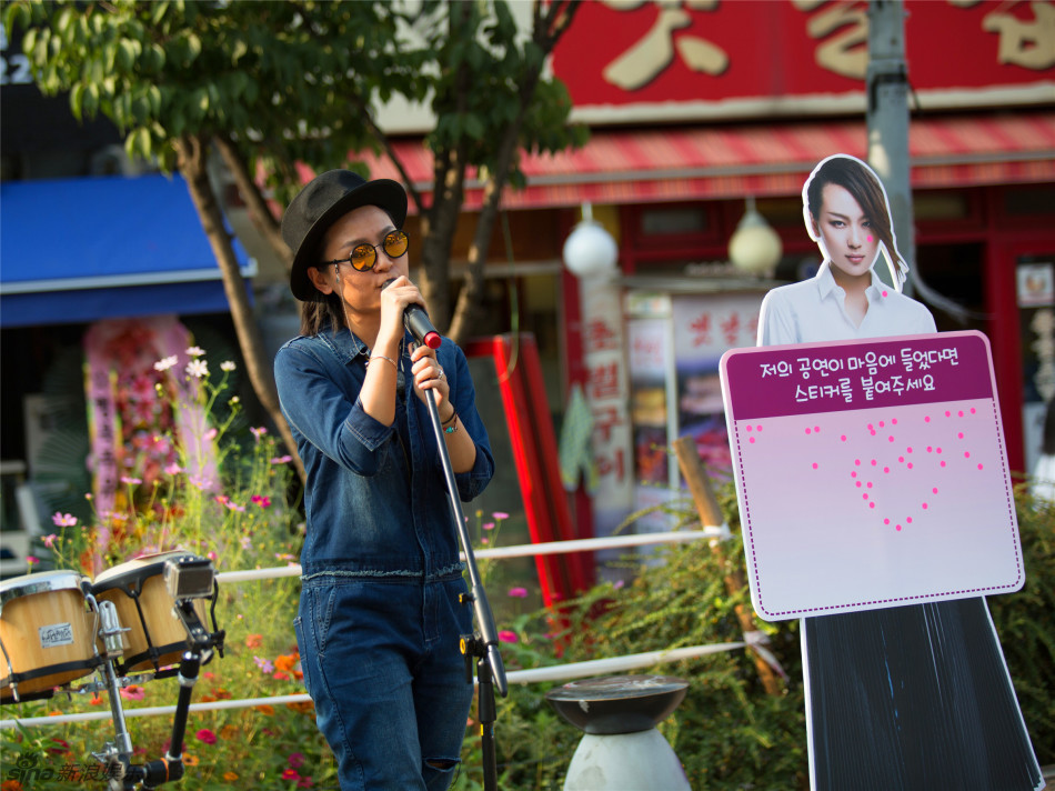 看見自己的人形立牌旁擺著一架鍵盤,還沒開始任務(wù)的華晨宇底氣十足、并不慌張,沒有其他藝人面對街頭的羞怯,“我也不知道說什么,直接唱吧?!比A晨宇在音樂面前格外自信。一握話筒,華晨宇瞬間進入狀態(tài),彈著自己拿手的歌曲,閉眼忘我的唱著天生歌喉所賦予的高音旋律,清澈的歌聲終于引來路過行人的側(cè)目圍觀。隨著圍觀歌迷越來越多,華晨宇也漸入佳境,越唱越high,“在哪里唱都是ok的”華晨宇唱到興致所及,更是展開即興創(chuàng)作,把街頭賣唱當(dāng)成了演唱會,陶醉的沉浸在自己的音樂世界。一曲歌完,華晨宇不忘呆萌的撒嬌像“招財貓”般可愛的兩手作揖,向幫自己投票的韓國路人送上酥酥一句“康桑密達”,來感謝異國陌生人對自己歌曲的喜愛。