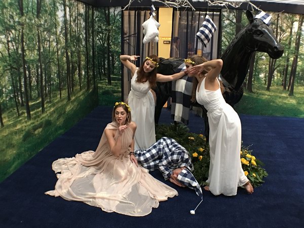 步入以北歐森林為原型裝飾的海絲騰Sleep Spa體驗(yàn)店,清新自然的氣息便撲面而來。以品牌標(biāo)志性藍(lán)白格床具為原型而設(shè)計(jì)的三維立體簽到墻則吸引了到場嘉賓們的關(guān)注。在固定有海絲騰鵝絨枕的背景床前,嘉賓們紛紛大秀“睡姿”、拍照留念。由舞者演繹的森林精靈則在其中翩翩起舞,時(shí)而躍動(dòng)其中,時(shí)而又悄然??吭谟珊=z騰配件裝飾的駿馬雕像邊,傳遞了海絲騰天然、健康的制作理念。別具創(chuàng)意的背板上,藍(lán)白格相間的隔窗拉開,蓉城著名的皮影戲便上演了,為現(xiàn)場嘉賓生動(dòng)再現(xiàn)了163年前海絲騰始于馬鞍制造的歷史傳奇。