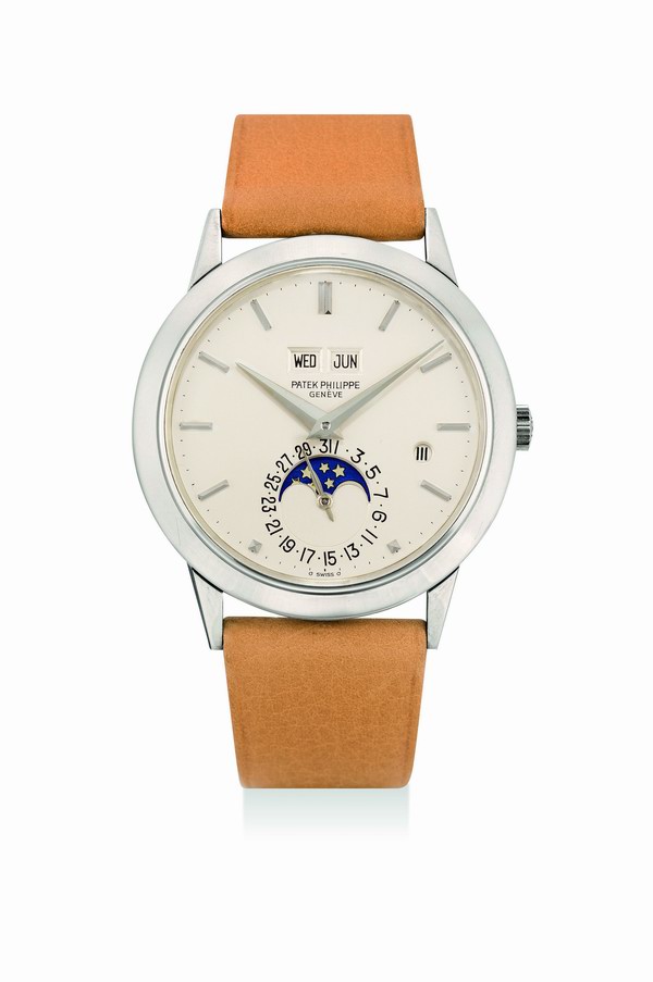 會(huì)上最備受矚目的拍品是一枚極為罕有的百達(dá)翡麗(Patek Philippe)18K白金自動(dòng)上弦腕表,型號3450,約1985年制,配備萬年歷及閏年顯示,據(jù)知是存世兩枚同款白金古董腕表中之一,表況品相完美無瑕,估價(jià)800萬至1,600萬港元(拍品編號305)。此表來源有序,表殼上兩個(gè)印記清楚明顯,無論是品牌知名度、機(jī)械復(fù)雜功能、罕有度、狀況均無與倫比,并附有原裝證書,彌足珍貴。此珍稀腕表原先由藏家直接購自位于日內(nèi)瓦的百達(dá)翡麗沙龍(Patek Philippe salon),1993年曾出現(xiàn)于紐約市場,及后一直未再現(xiàn)其蹤影,現(xiàn)今于本拍場再度曝光,極為難得,預(yù)料將引起激烈競投。