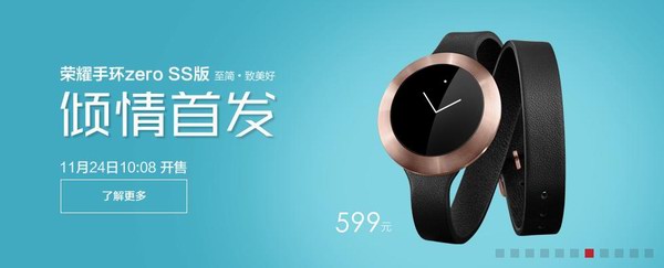 據(jù)悉,榮耀手環(huán) zero SS版在當(dāng)日10:08于京東商城(http://item.jd.com/2153978.html )、華為商城(http://www.vmall.com/product/2323.html)、天貓華為旗艦店等平臺(tái)與其經(jīng)典版本同步發(fā)售,售價(jià)599元,且有咖啡色、黑色、卡其色三款腕帶可選。