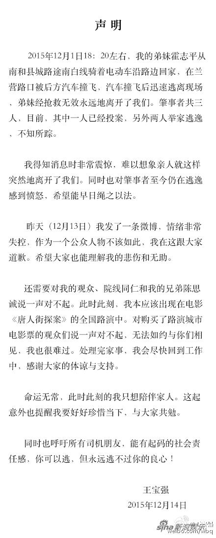 標(biāo)簽:王寶強(qiáng)    聲明    車禍