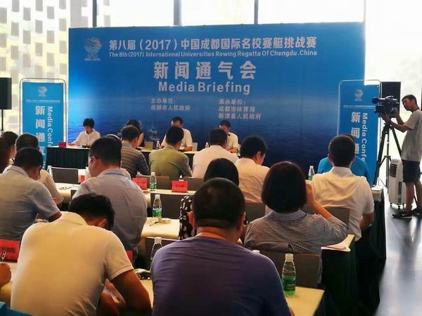 7月20日上午,第八屆(2017)中國(guó)成都國(guó)際名校賽艇挑戰(zhàn)賽新聞通氣會(huì)在新津舉行。