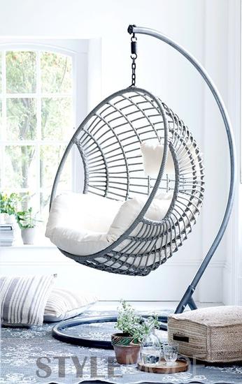 藤蔓風(fēng)格的吊椅往往給人慵懶的感覺,而其藤蔓的質(zhì)地也意味著夏季的清涼感,所以吊椅是營造這種溫馨清爽氛圍的最佳利器之一。
