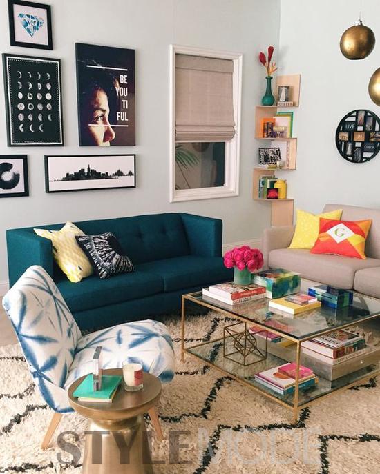 茶幾清新亮麗的顏色與沙發(fā)、窗簾、地毯相互呼應(yīng),十分協(xié)調(diào)。相同材質(zhì)的茶幾,不同造型和高度。沙發(fā)旁的小凳子充當(dāng)花架,這三個(gè)物體在同一空間中的關(guān)系更加緊密,更有層次、空間感。茶幾是客廳的心臟,不管是圓形、方形還是組合茶幾,總有一款適合你~