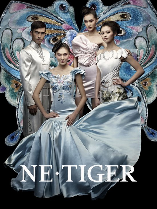 NE·TIGER 2010高級定制華服“蝶扇·緣”,延續(xù)了2007“鳳”、2008“錦繡國色華夏禮服”、2009“國色天香華服大典”的華服風(fēng)格,秉持“融匯古今貫通中西”的一貫理念,詮釋了本季主題:蝶舞“扇”緣,千年姻緣一線牽。彩蝶,自古是美好的化身,無論是莊公夢蝶的逍遙自在,還是梁?;睦寺厣?,都帶給NE·TIGER華服無盡靈感。擁有四千多年歷史的雅扇,不僅代表祥瑞、威儀和超凡智慧,還被作為情意的信物和歷史的折射,蘊涵著NE·TIGER追求上善若水、“扇”結(jié)良緣的美好希冀。萬事因緣起,剛?cè)岵牡?、扇之美,華服的男款與女裝,彼此之間因緣和合,使得時尚與傳統(tǒng)藝術(shù),這對靈感的兩生花,前所未有地渲染出雋永的文化之魅。